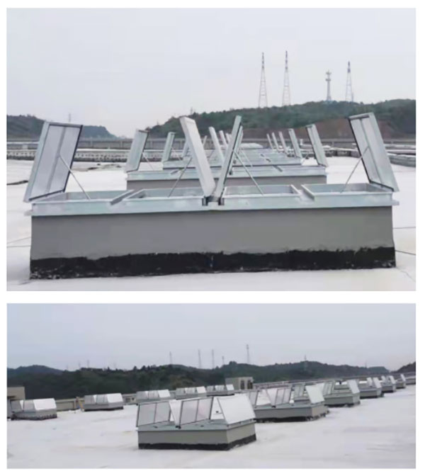 一字型外觀,兼具采光于通風,并可有效減少風壓阻力,天窗頂部可采用采光板或玻璃,開啟電機設計成24V安全電壓,可連接消防聯動控制系統及風、雨、煙感應器。***開啟角度為60°-90°。系統可隨意消防聯動使用并具有手動控制系統。