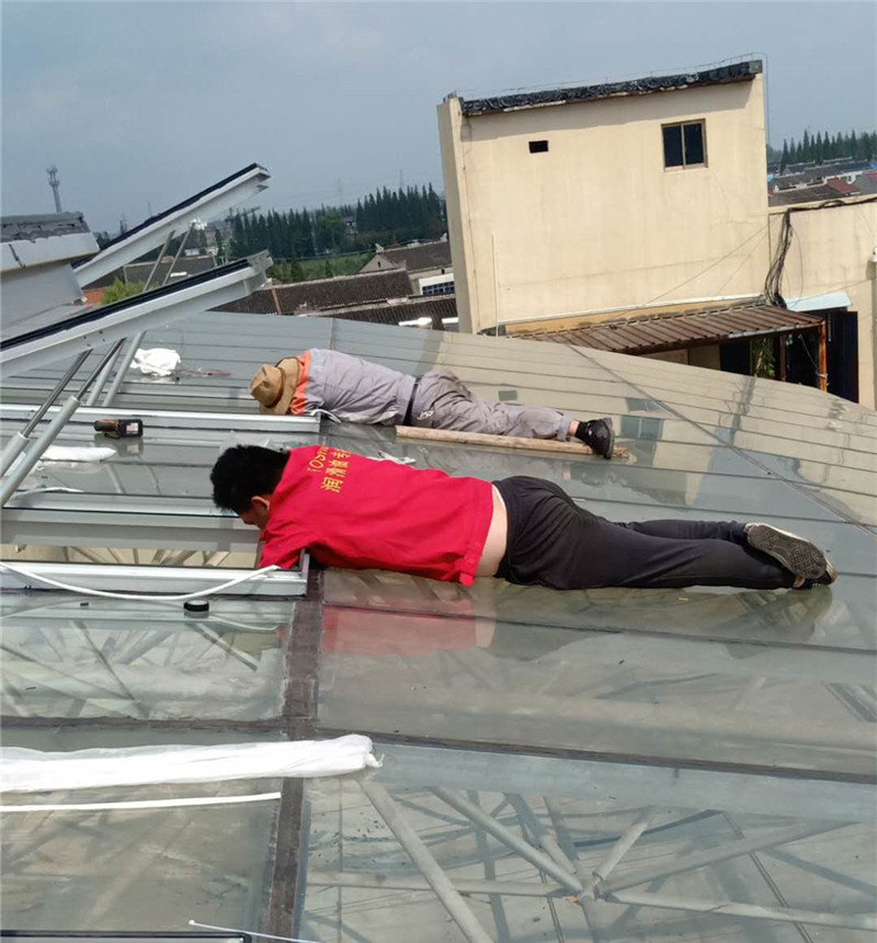 屋面滑、高是現(xiàn)場安裝的主要困難,鑫友售后人員憑借豐富的經(jīng)驗,嫻熟的技能,保證了安裝進(jìn)度。