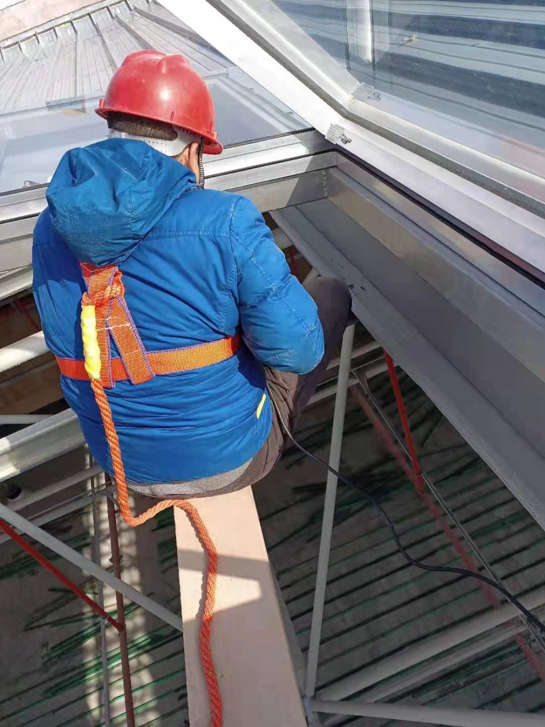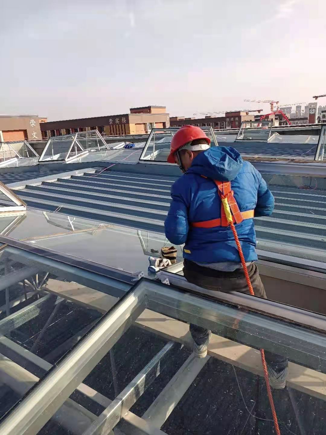 屋面電動(dòng)排煙天窗,安裝位置高,可操作平臺(tái)面積小,鑫友專業(yè)安裝團(tuán)隊(duì)?wèi){借過硬的安裝本領(lǐng),豐富的安裝經(jīng)驗(yàn),客服困難,保質(zhì)保量得完成了安裝任務(wù),并按期完成驗(yàn)收,交付使用。