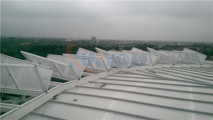 ◆ Arched Skylight is applied to thebuildings, used for mainly ventilation. The maximum opening angle is 45°.