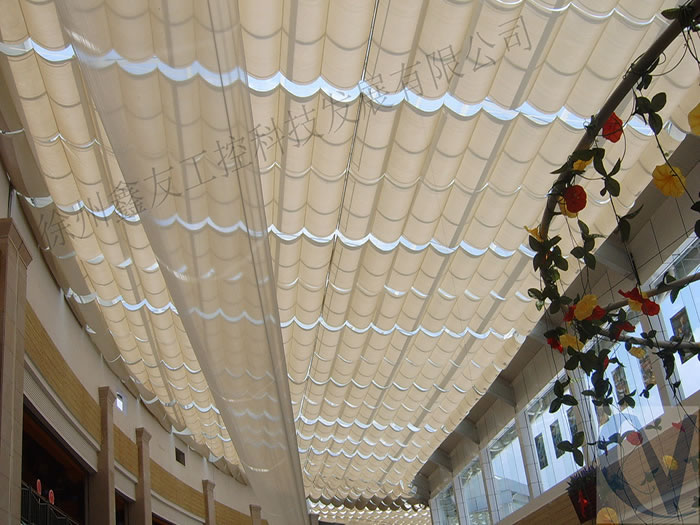 效 果:天棚簾完全展開后,面料呈現均勻的波浪效果。